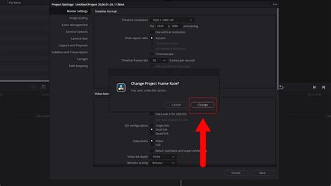 davinci resolve change frame rate of project
