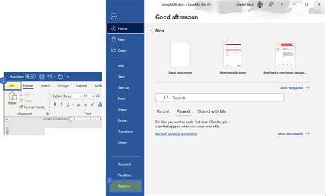 how to go to options in word